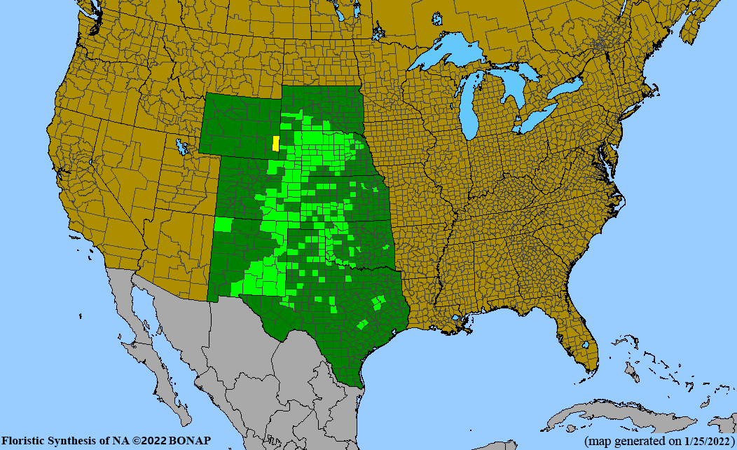 ![]() | Adventive or Introduced state (NA Native and Adventive in state, and Present in county) |